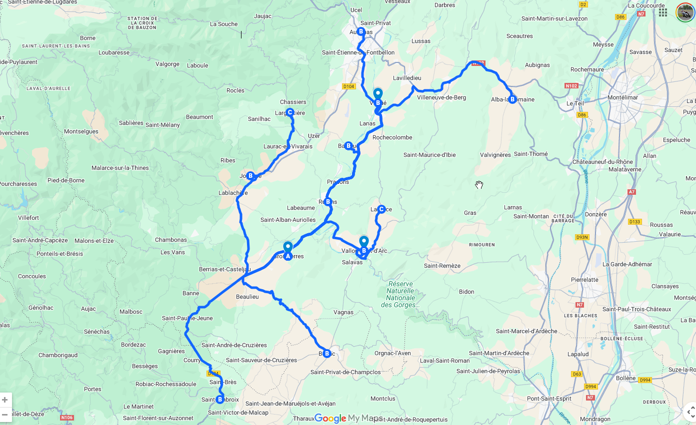 Manchmal denkt man, irgendwann kann einen nichts mehr überraschen – bis man das nächste Dorf sieht. Largentière mit seinen Gassen, Aubenas mit seiner Lebendigkeit, Saint-Croix-du-Verdon mit malerischen Aussichten, und Saint-Alban-Auriolles als stiller Ruhepol. Eine Tour wie eine Achterbahnfahrt – nur ohne Looping.